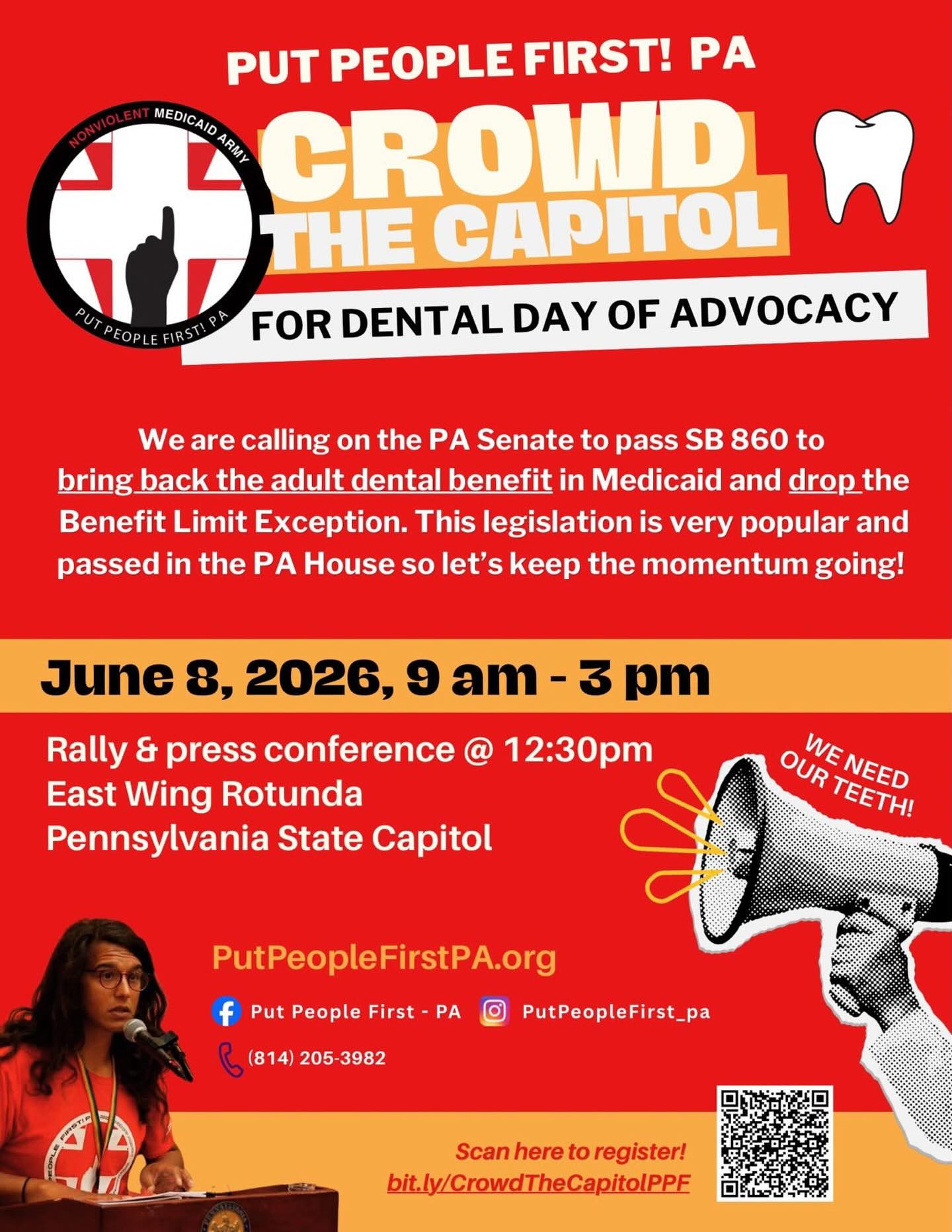 🆘 We’re demanding the PA Senate pass SB 860 to bring back the Adult Dental Benefit in Medicaid and *drop* the Benefit Limit Exception (BLE). This legislation passed the PA House, and now we need to the PA Senate to do their jobs!