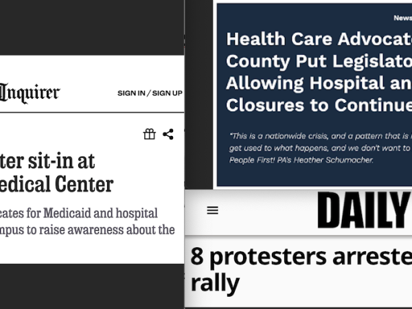 Put People First! PA received press prior to last week’s action at Crozer-Chester in Delaware …